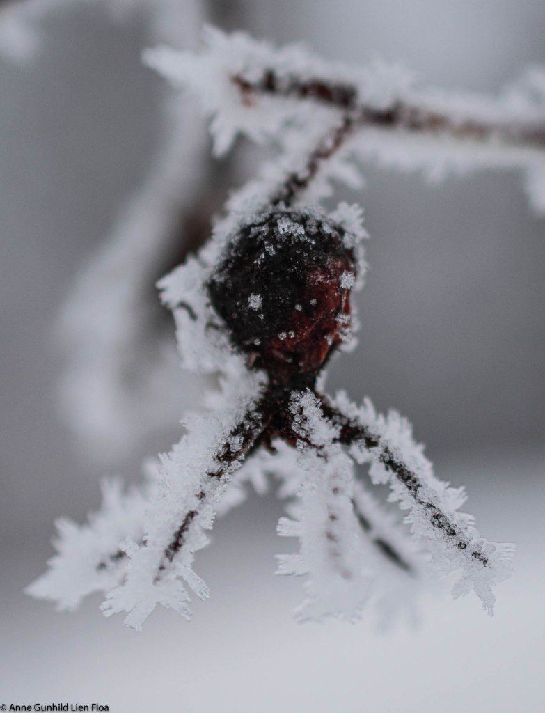 Winter can be a beautiful time with frosted leaves and and a drizzle of light snow over the green moss. But often it is heavy rain and constant lack of color. The sunrise is late in the morning and the sunset is early in the afternoon. But sometimes the sun shines and the trees covered with frost sparkles in the sunshine.