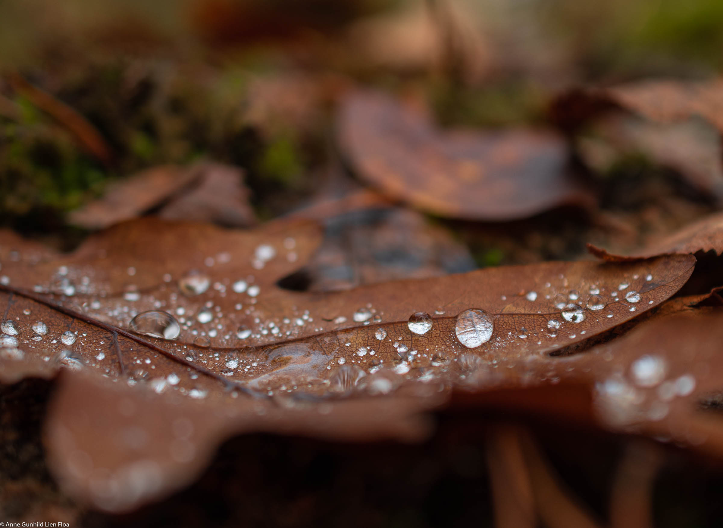 Now it is November and almost all the leaves on my favourite oak trees has fallen to the ground. They are still beautiful, resting on the the field covered with frost, snow or droplets.